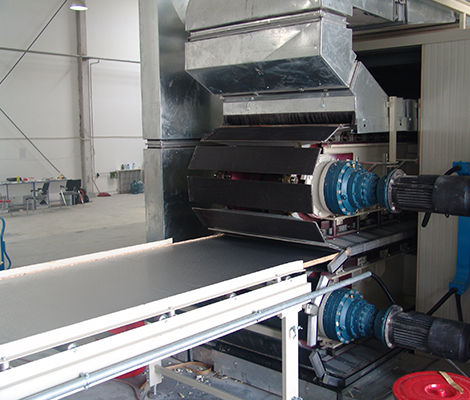 擁有國(guó)內(nèi)從歐洲全套引進(jìn)的柔性面材夾芯板連續(xù)生產(chǎn)線(xiàn)兩條。